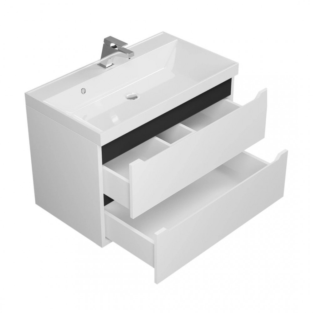 Тумба под раковину Uperwood Tanos 80 см, подвесная, белая/графит